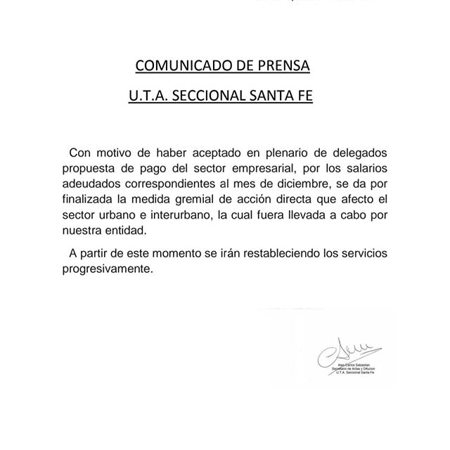 Así lo hicieron saber desde la UTA a través de un comunicado de prensa, en el que aceptan la propuesta de pago del sector empresarial por los salarios adeudados – ver comunicado en galería de fotos: