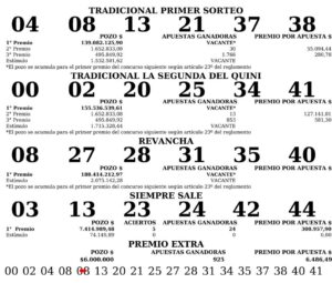 En el Tradicional salieron el 04 – 08 – 13 – 21 – 37 – 38. Había en juego $ 139.082.126, los cuales quedaron acumulados para el sorteo venidero.