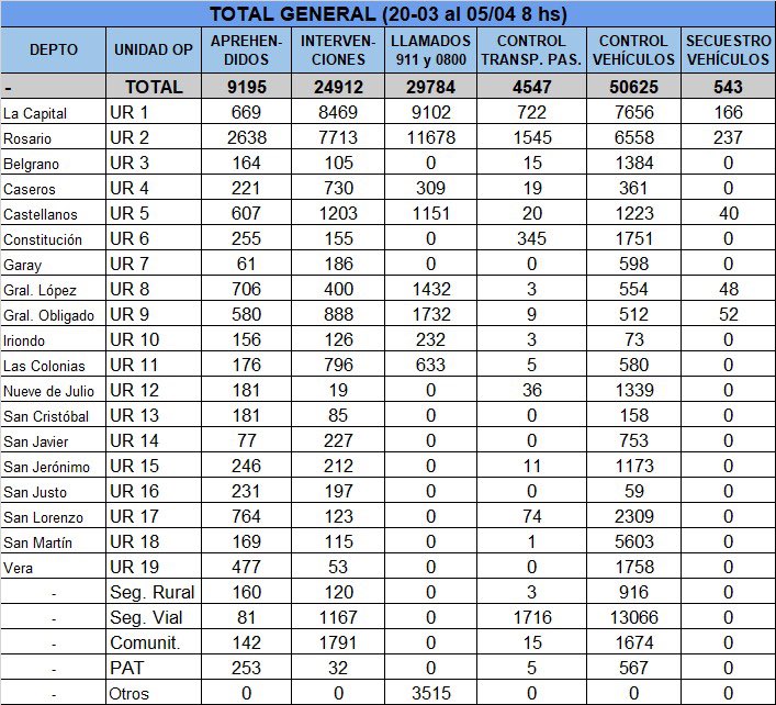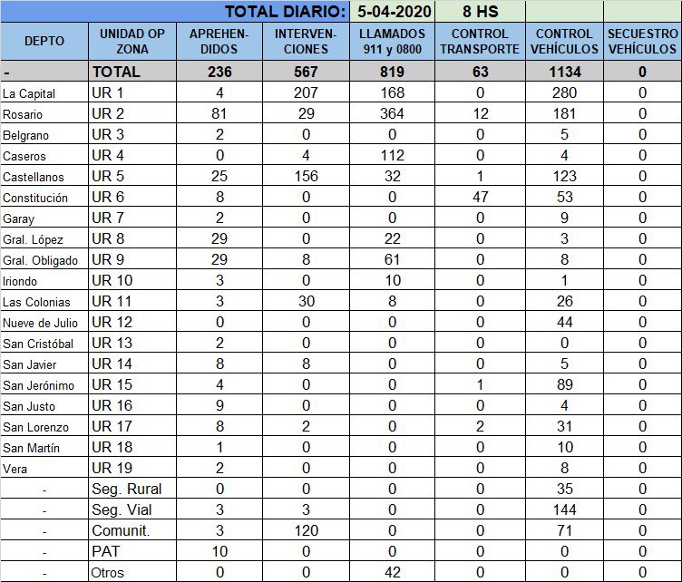 Intervenciones de la Policía de la Provincia de Santa Fe ante el aislamiento obligatorio, desde el 20 de marzo hasta hoy 5 de abril de 2020.